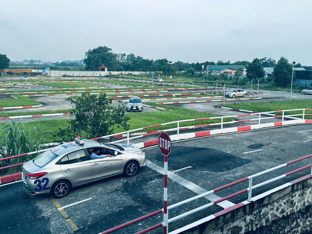 - Sân tập lái rất rộng rãi và thoáng, sân tập lái đa dạng địa hình.